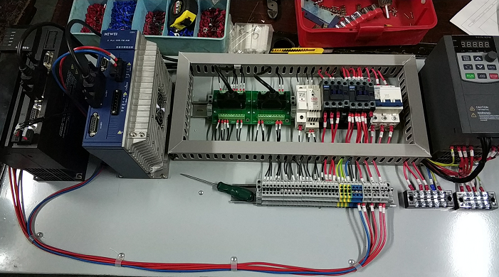 調直切斷機系統用到了電子凸輪運動功能,主流系統控制方案為觸摸屏、運動控制器、送料伺服、飛剪伺服。   科威智能伺服集伺服驅動、PLC控制、運動控制于一體,正好適用于調直切斷機系統??仆悄芩欧{直切斷機系統方案為觸摸屏、飛剪智能伺服、送料智能伺服。